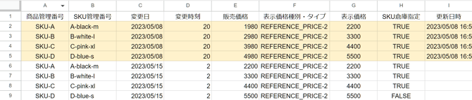 商品の SKU ごとの販売価格やあす楽設定などを、任意の日時に自動で更新できます。